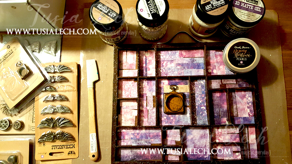 2. I choose some Mechanicals and started to place them in almost each sector. I have added also some Art Stones and Glass Beads.
